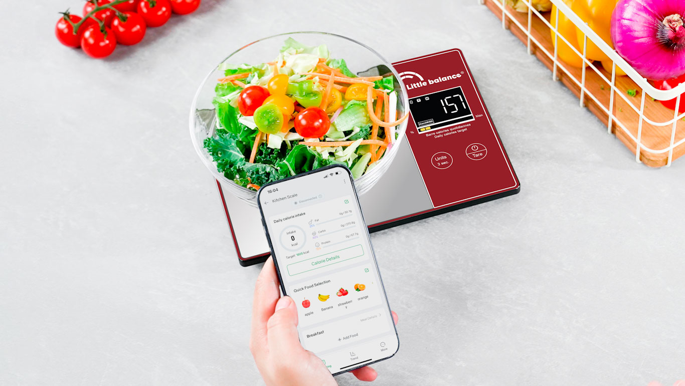 Une balance de cuisine intelligente et intuitive pour mettre en place un suivi quotidien de l'alimentation. Connectée à l’appli bien-être et santé FitDays+, déjà utilisée par les impédancemètres connectés Little balance.